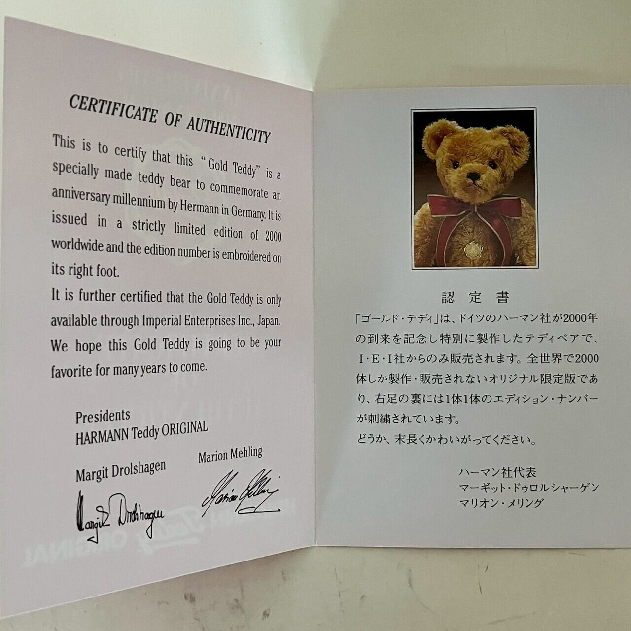 西暦2000年のミレニアムを記念して、ドイツの老舗テディベアメーカーHERMANN TEDDY社が世に送り出したテディベアたち。