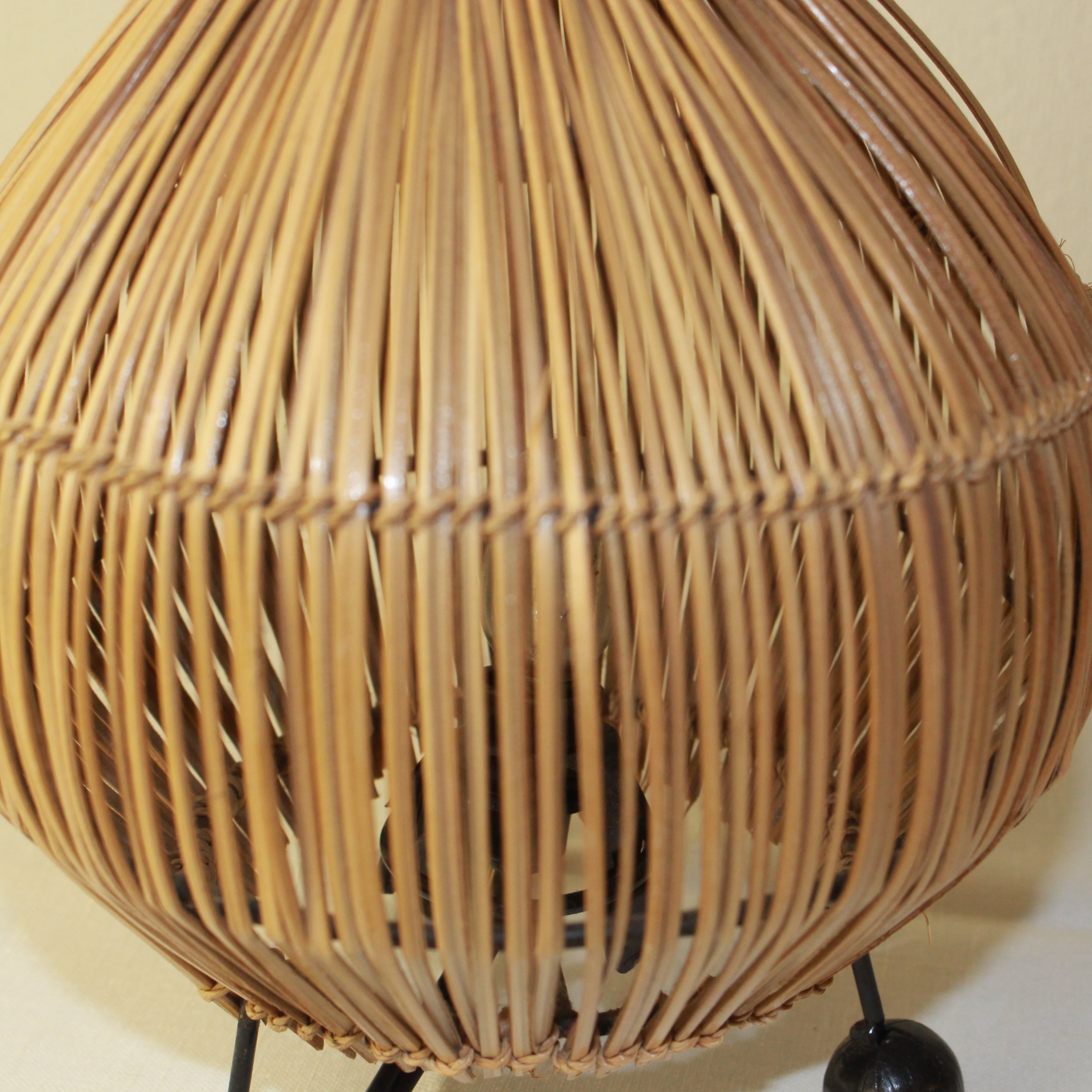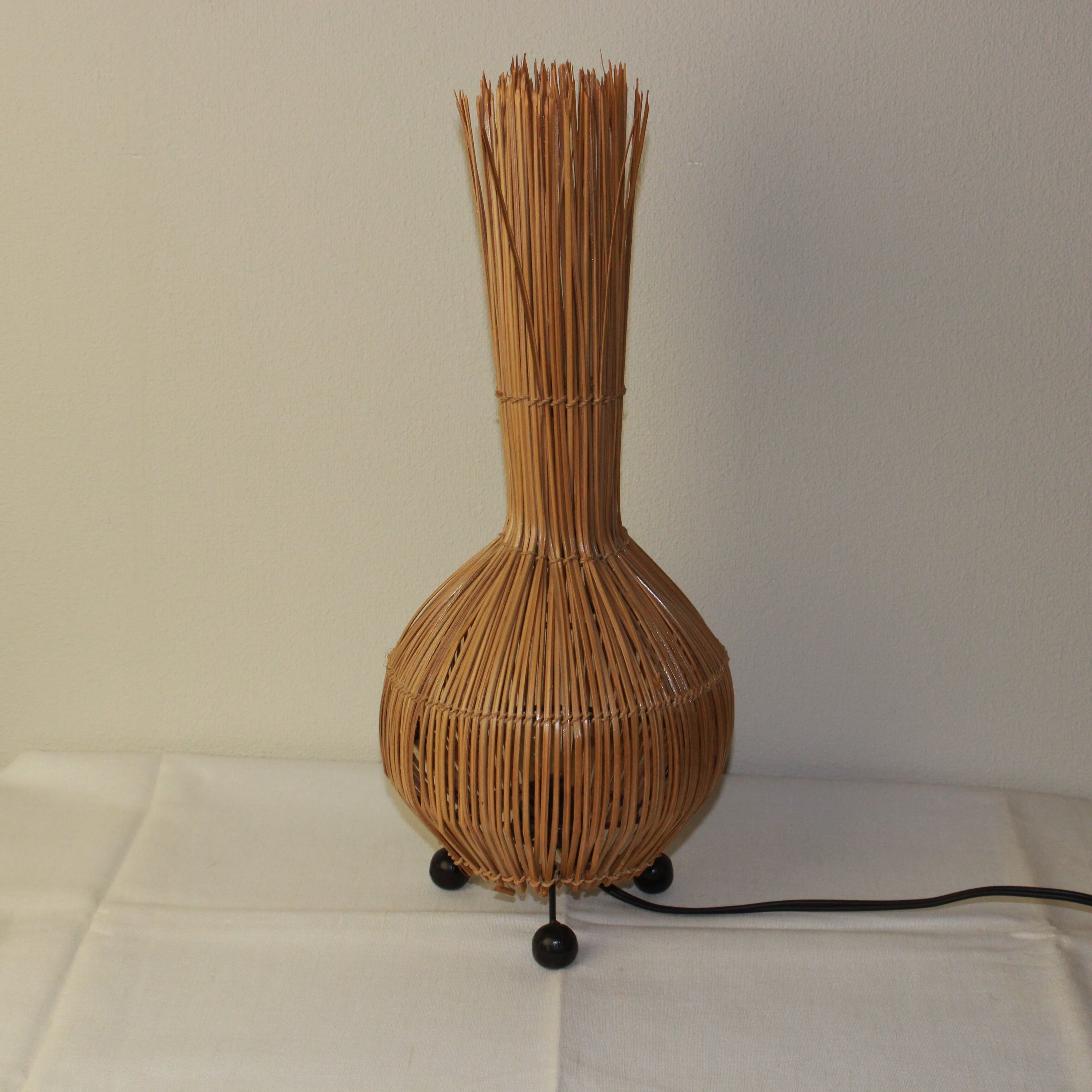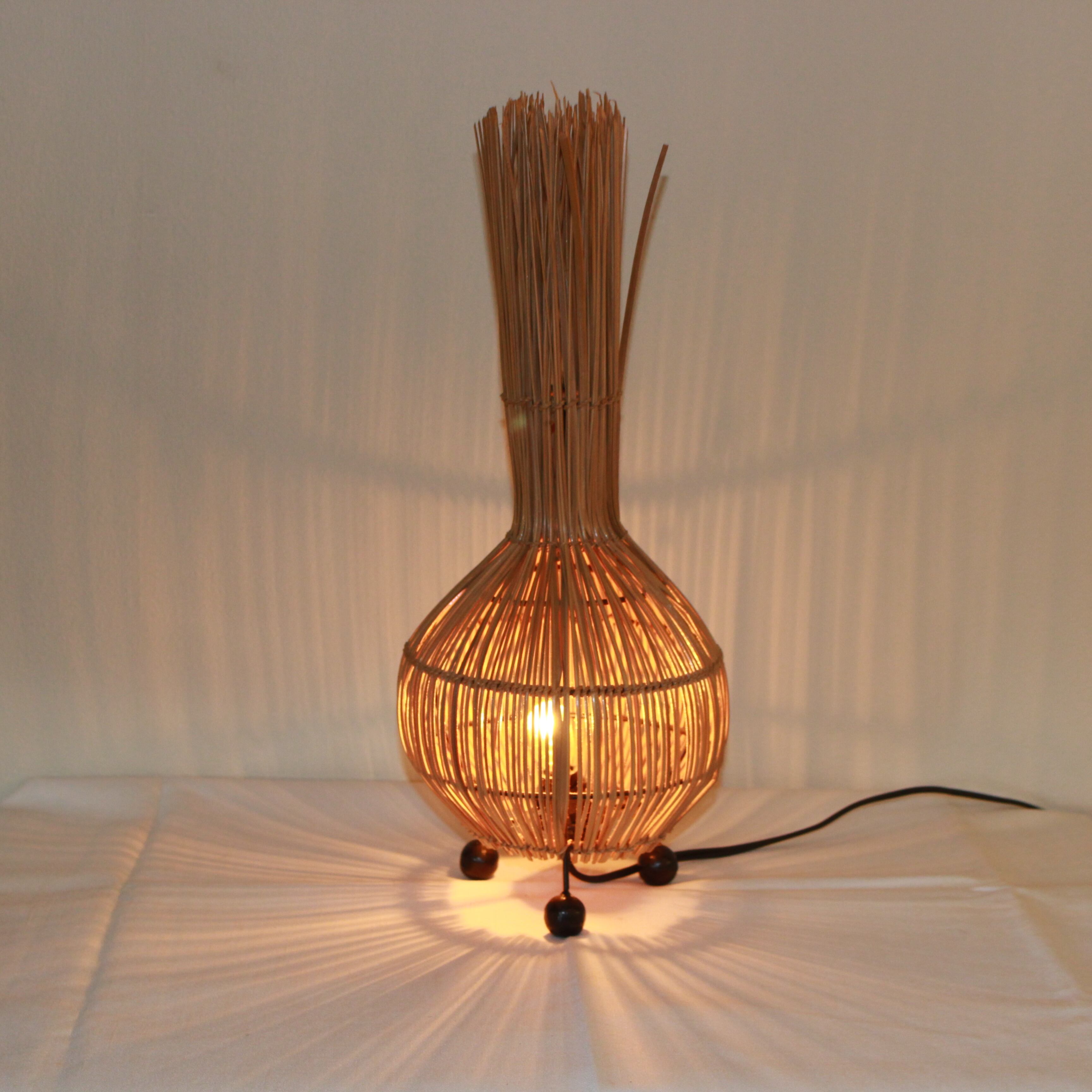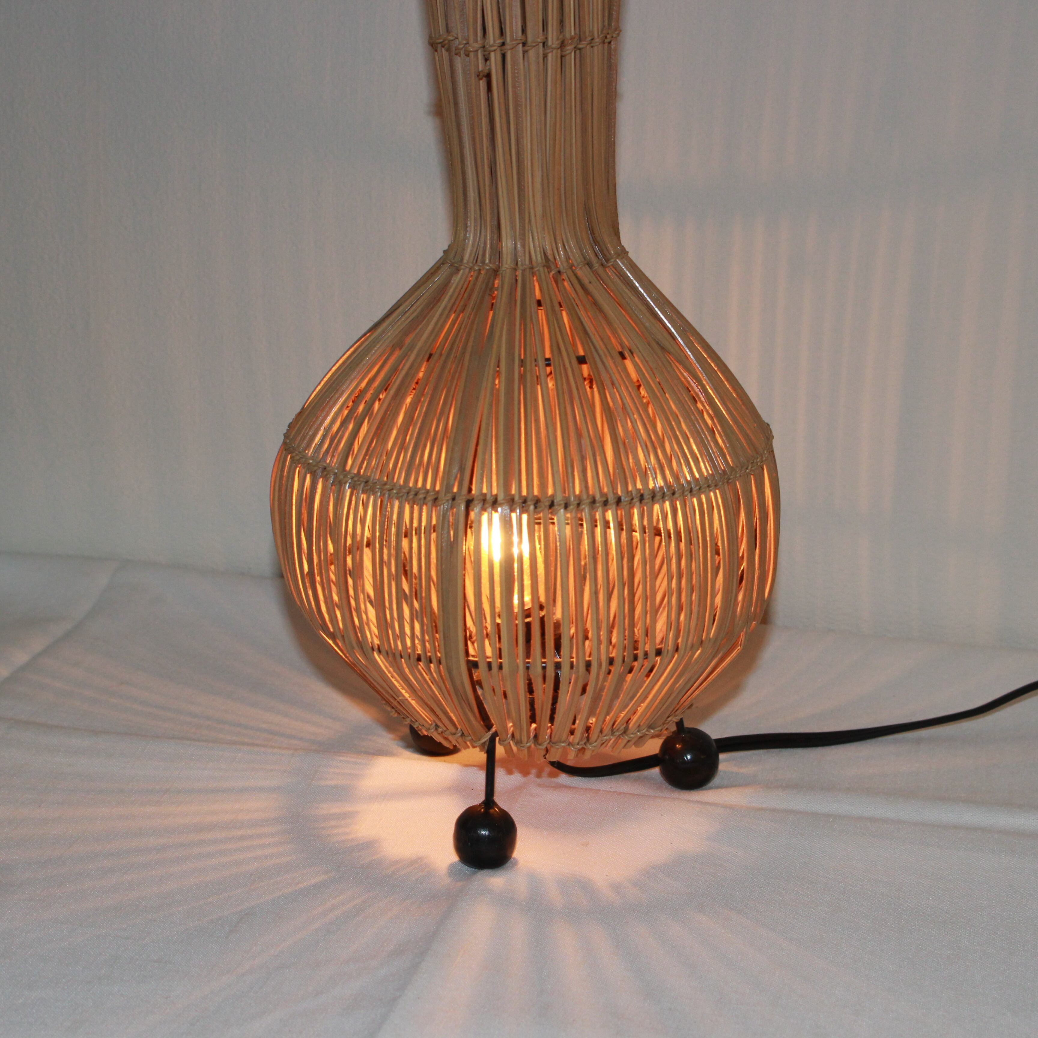 光を包む、玉ねぎ型の籐スタンドランプ