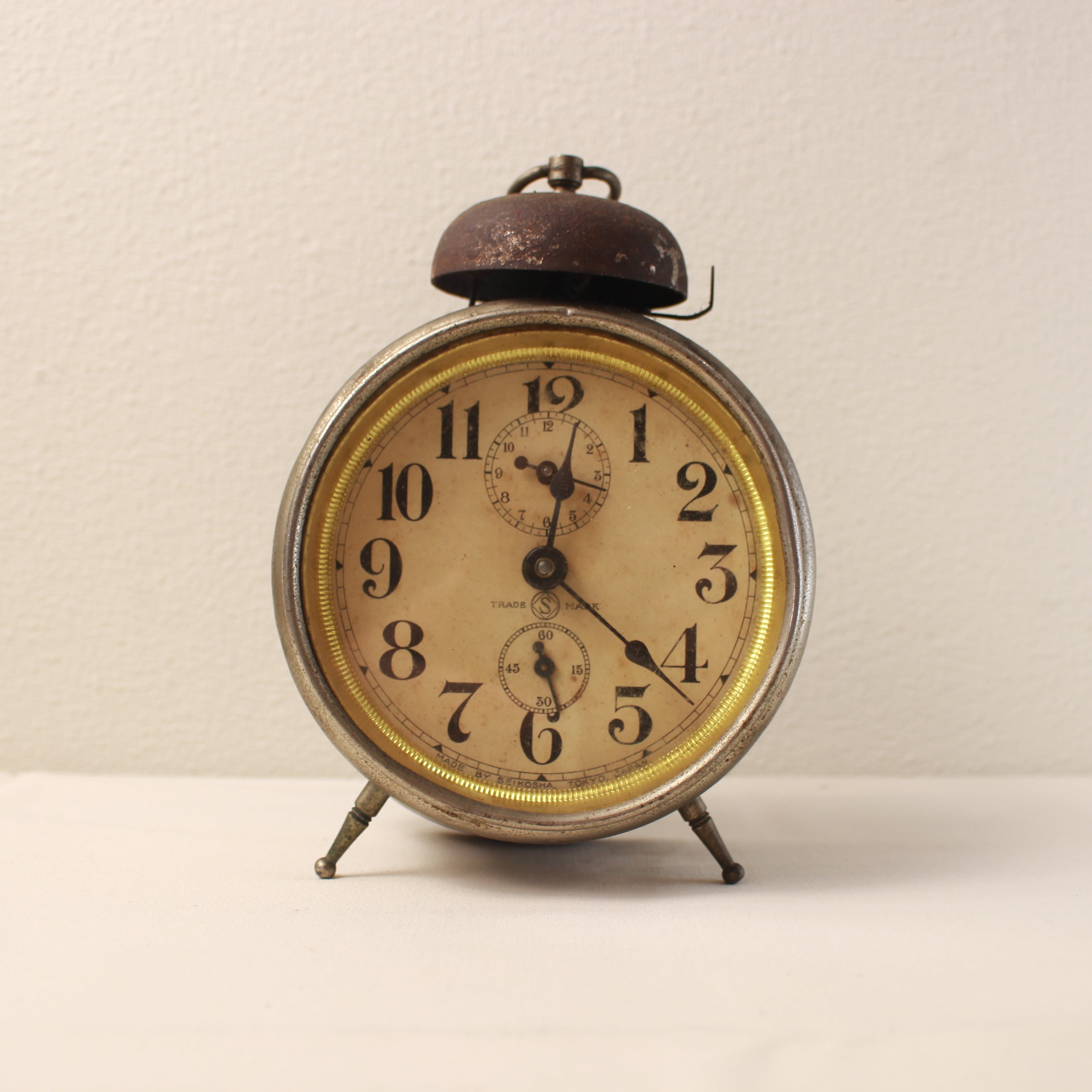 【動作確認済】 へそ型 精工舎(現セイコー) ゼンマイ式目覚まし時計(昭和初期)
