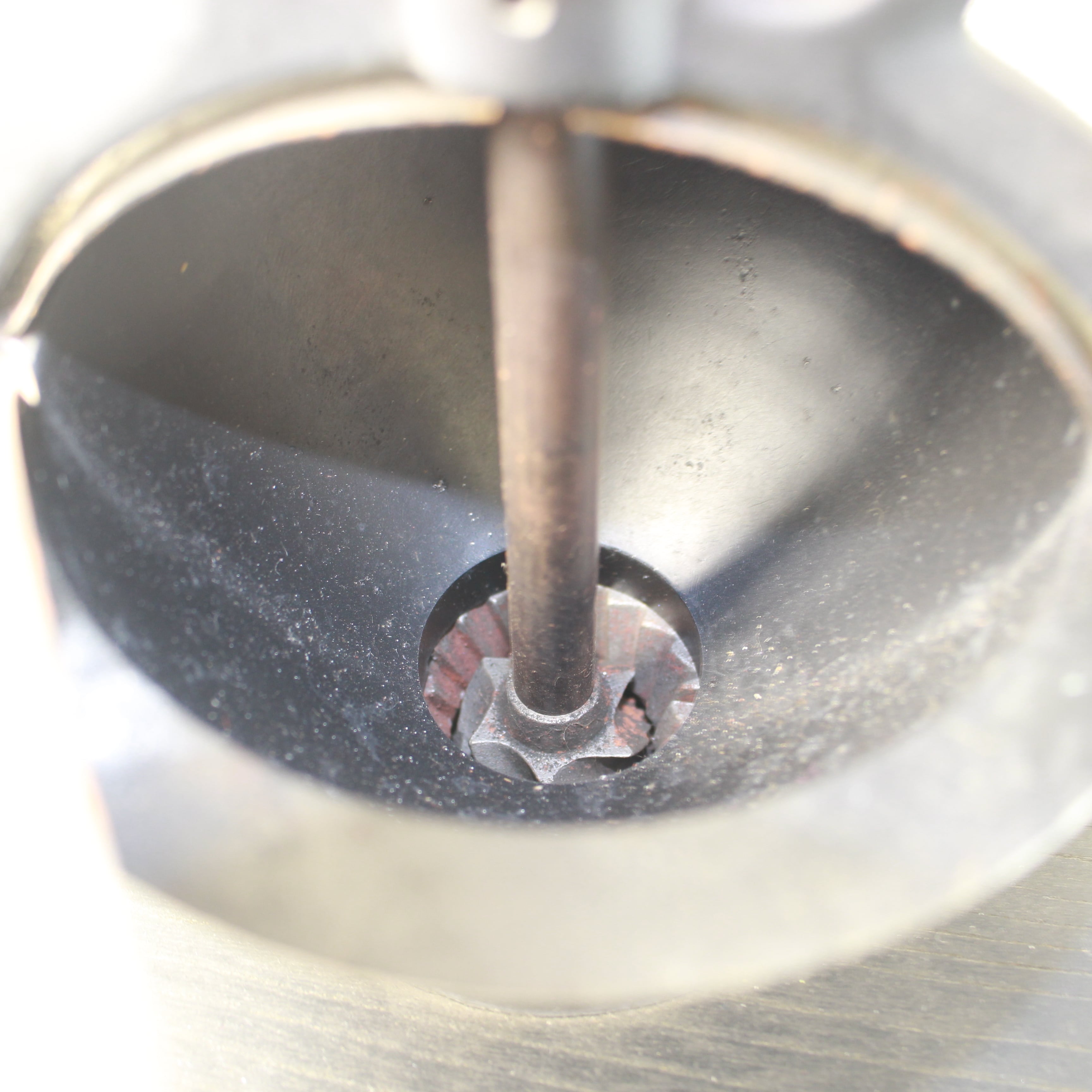 歯車やシャフトが連動し、豆を挽く感触が手に伝わります。